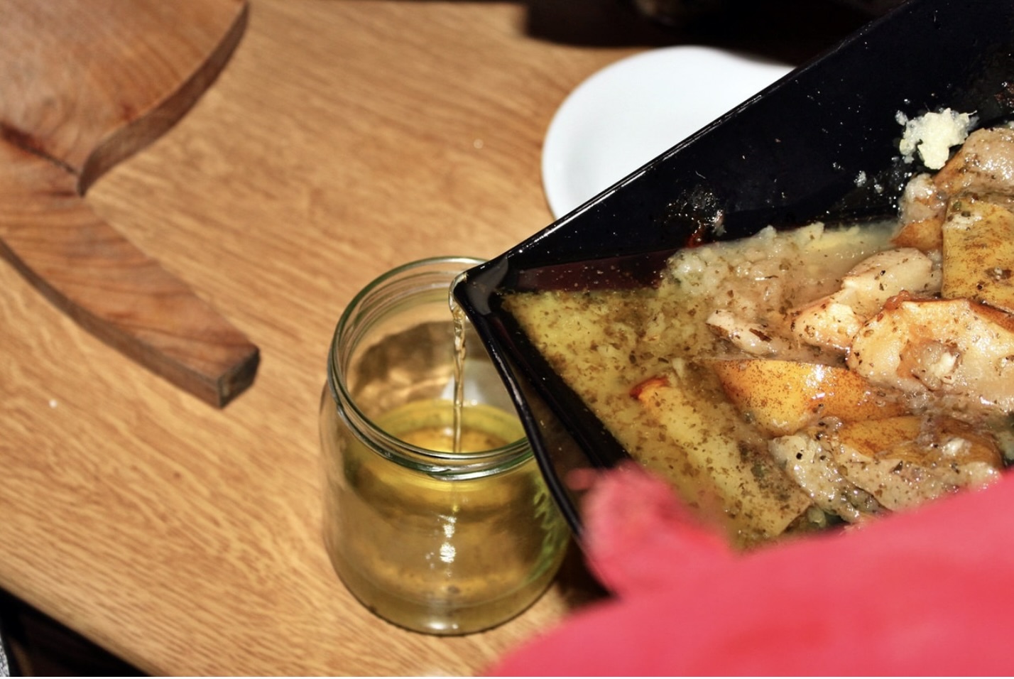 Pozwól blasze chwilę postać, a następnie zlej do słoika zebrany na powierzchni tłuszcz.