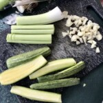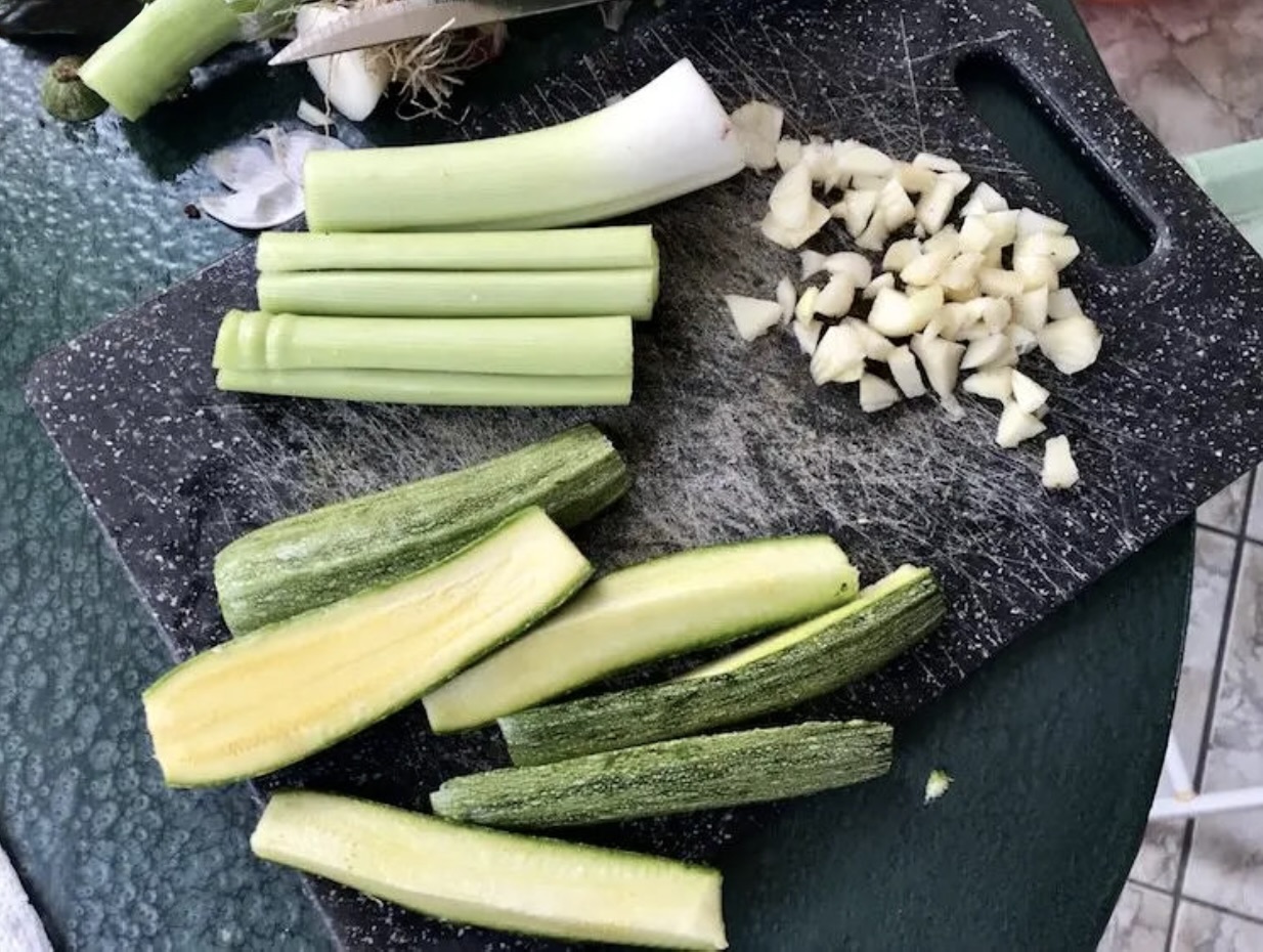Warzywa: 1 cukinia (najlepiej młoda) oraz 1 por (najlepiej z długą, jasnozieloną częścią).