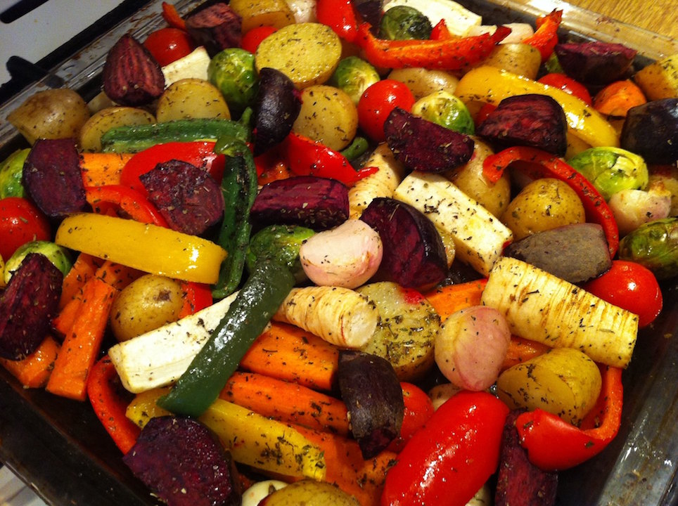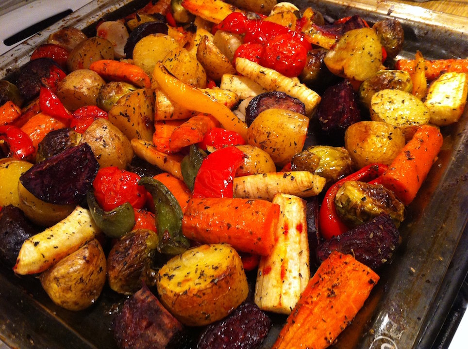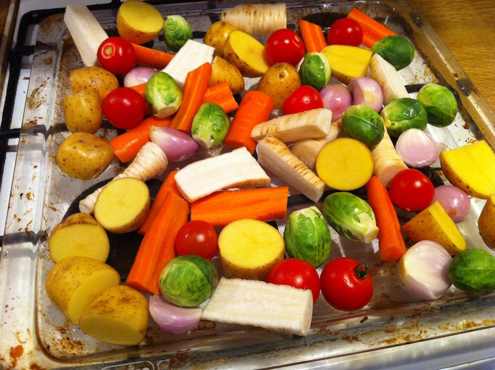 To proste danie, które pozwala wykorzystać różnorodne warzywa dostępne zimą. Całość piecze się około godziny, aż warzywa będą chrupiące i „al dente”.