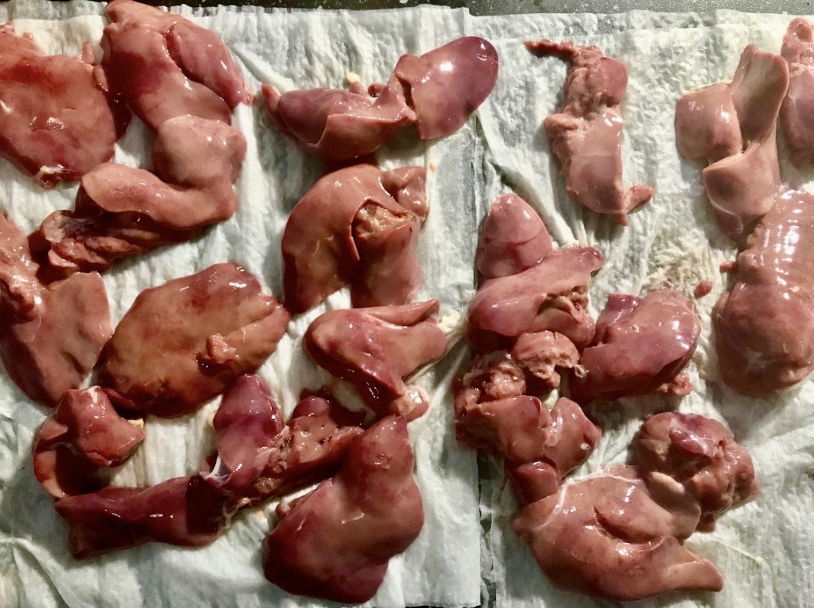 Oczyszczanie: Z wątróbki usuń żyłki i błonki. Umyj ją i dokładnie osusz na ręczniku papierowym.