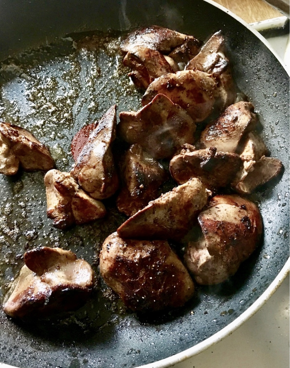 Doprawianie: Posól i popieprz dopiero na samym końcu (po wyłączeniu gazu), aby wątróbka nie stała się twarda.