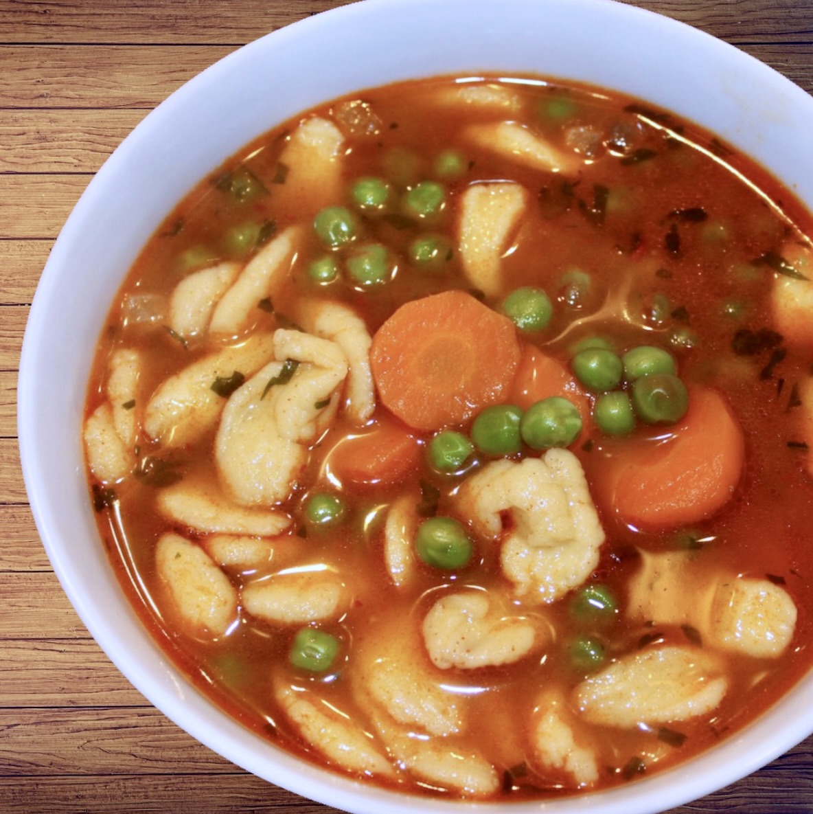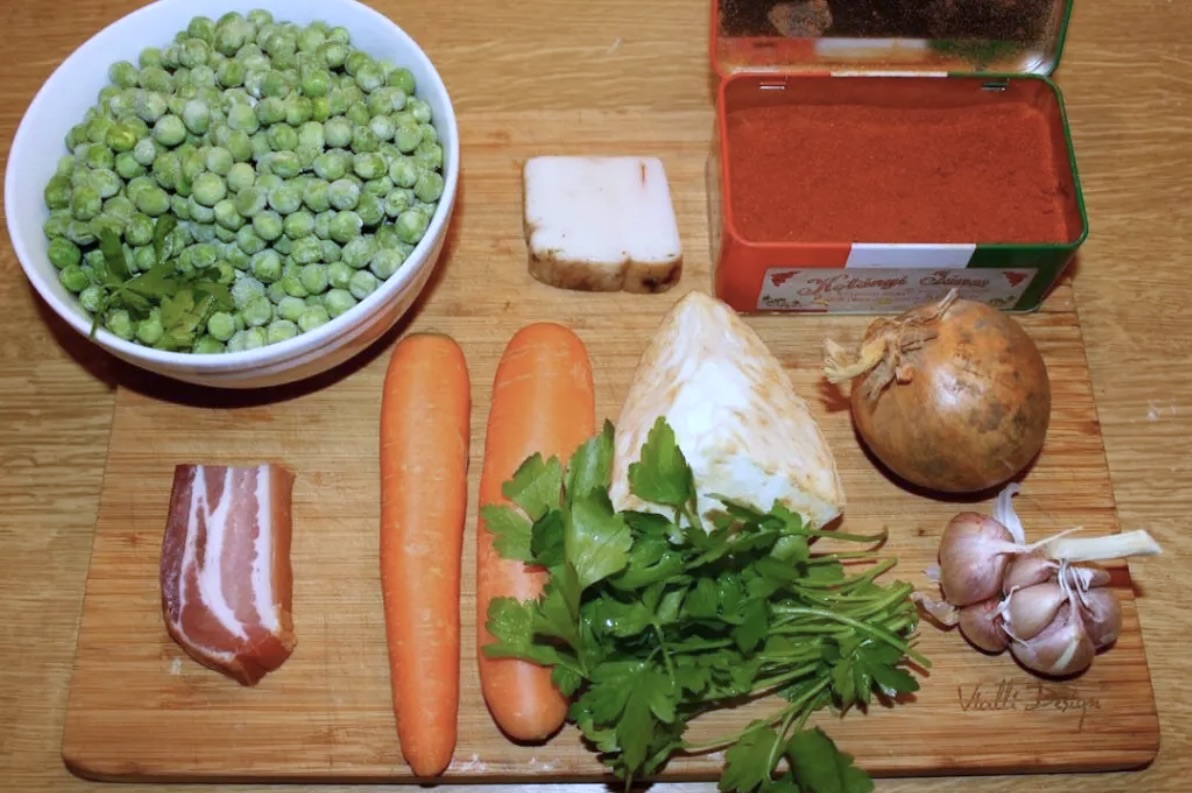Węgierska zupa z zielonego groszku to w sumie dość typowa zupa jarzynowa, jednak „węgierski akcent” w postaci odrobiny smalcu, skwarek i oczywiście słodkiej, mielonej papryki czyni ją unikalną. Zupa jest idealna na zimowe dni, jednak Węgrzy często jadają ją również na wiosnę, gdy pojawia się świeży groszek. Jeżeli nie lubisz smalcu możesz użyć innego tłuszczu, ale to już nie będzie ta sama zupa. Ja dałem smalcu nieco mniej, ale dodatkowo użyłem nieco surowego, wędzonego boczku i wędzonej słoniny, aby wzbogacić smak zupy. Zupa z zielonego groszku jest pełna aromatów.