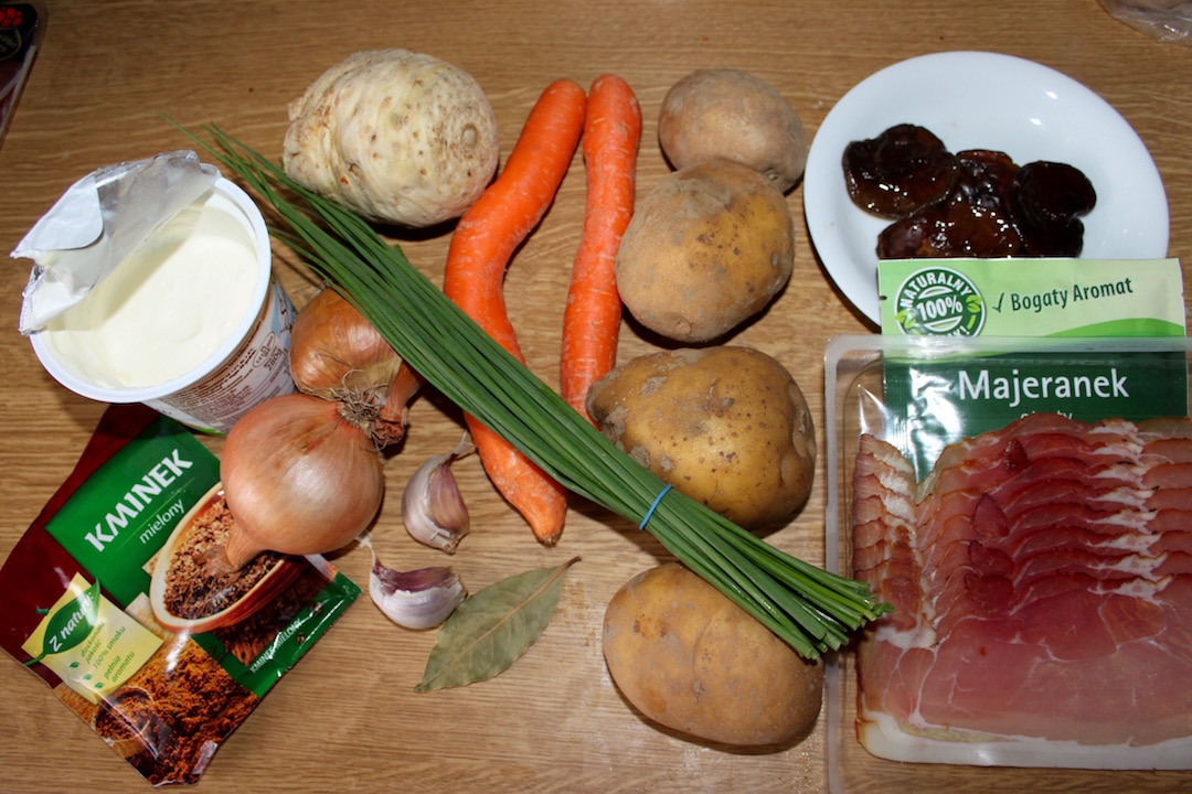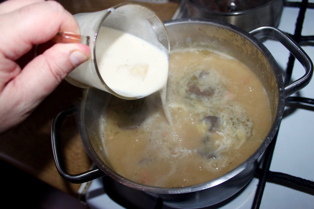 Wykończenie: Zabiel zupę śmietaną (zahartuj ją wcześniej odrobiną gorącej zupy). Zagotuj krótko, a następnie dopraw do smaku pieprzem, kminkiem, majerankiem oraz octem winnym.