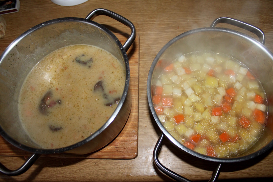 Druga część warzyw: W tym samym czasie w pozostałej połowie bulionu ugotuj do miękkości resztę warzyw (te 2/3).