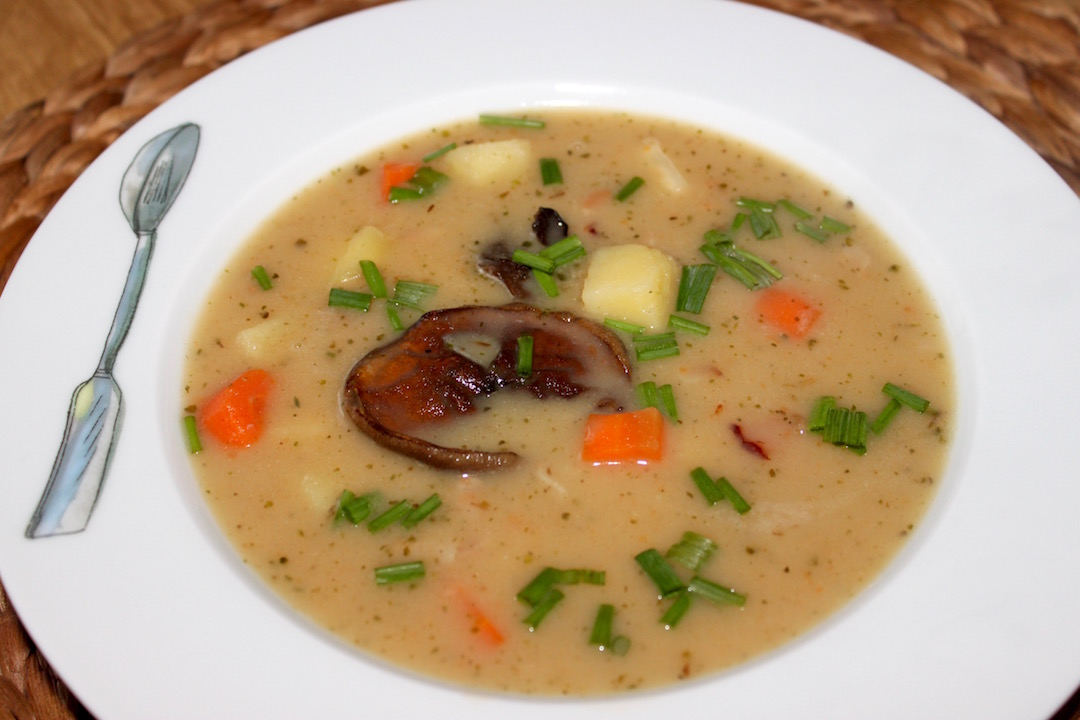 Wiedeńska zupa ziemniaczana z grzybami leśnymi to tradycyjne austriackie danie, które w smaku i aromacie może przypominać polski żurek dzięki dodatkowi majeranku, czosnku i kminku.