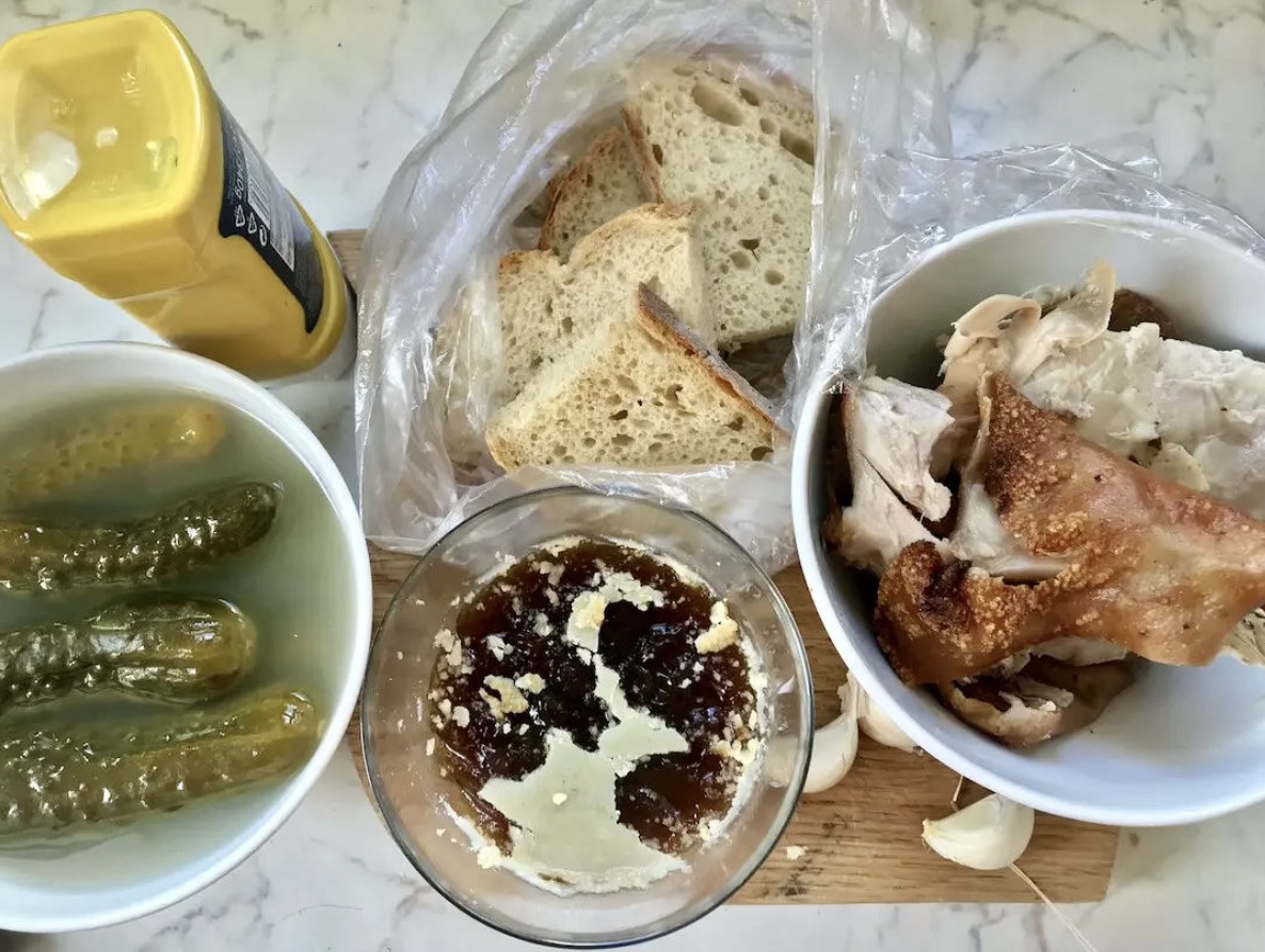 200 g pieczonej wieprzowiny (np. łopatki lub karczku) z poprzedniego dnia