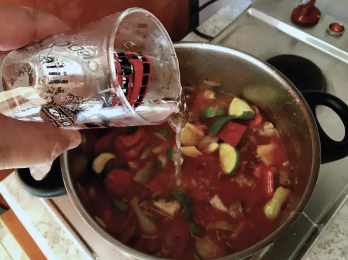 Przygotowanie bazy: Pomidory zetrzyj na tarce (jeśli używasz świeżych). Mięso pokrój w kostkę.