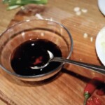 W miseczce wymieszaj 4 łyżki sosu sojowego, 4 łyżki wody, 2 łyżki ciemnego oleju sezamowego, 2 łyżki sosu ostrygowego, sok z połowy limonki i odrobinę ostrego sosu. Odstaw.