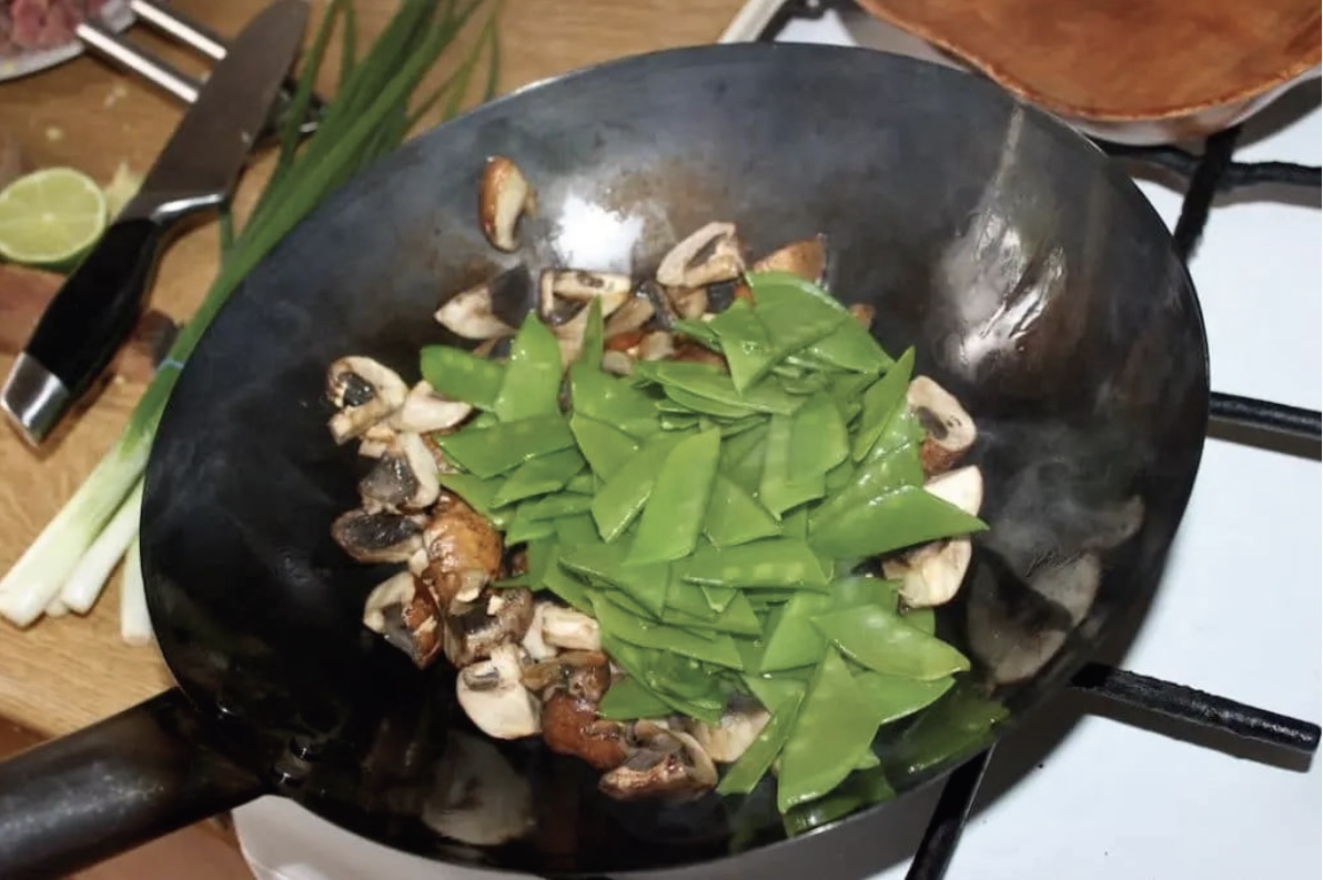 Na mocno rozgrzanym woku smaż mięso 2 minuty, aby z zewnątrz było przesmażone, a w środku soczyste.