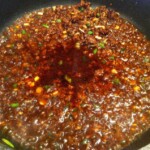 Włóż do sosu 150 g mielonej wieprzowiny.