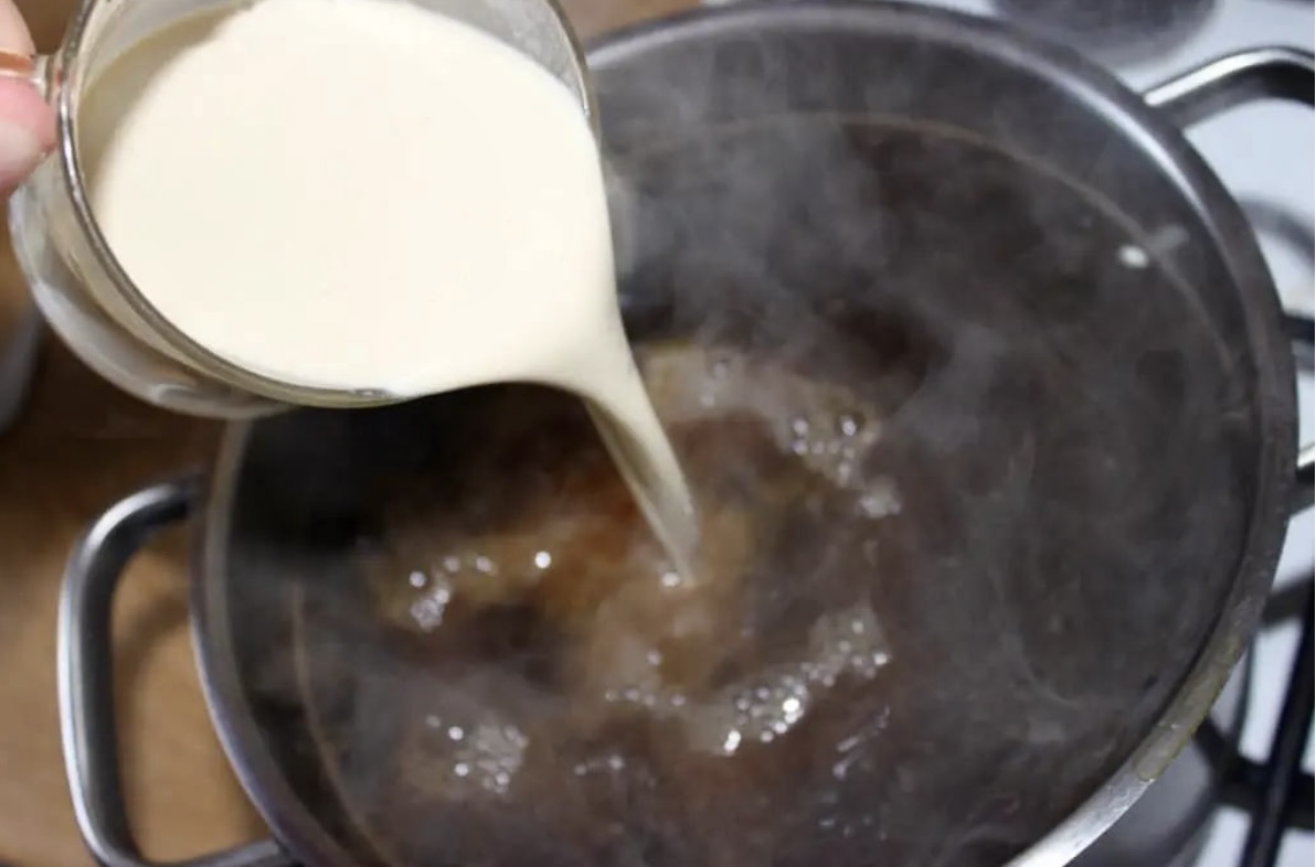 Dodaj dwie kopiaste łyżki śmietany i wymieszaj.
