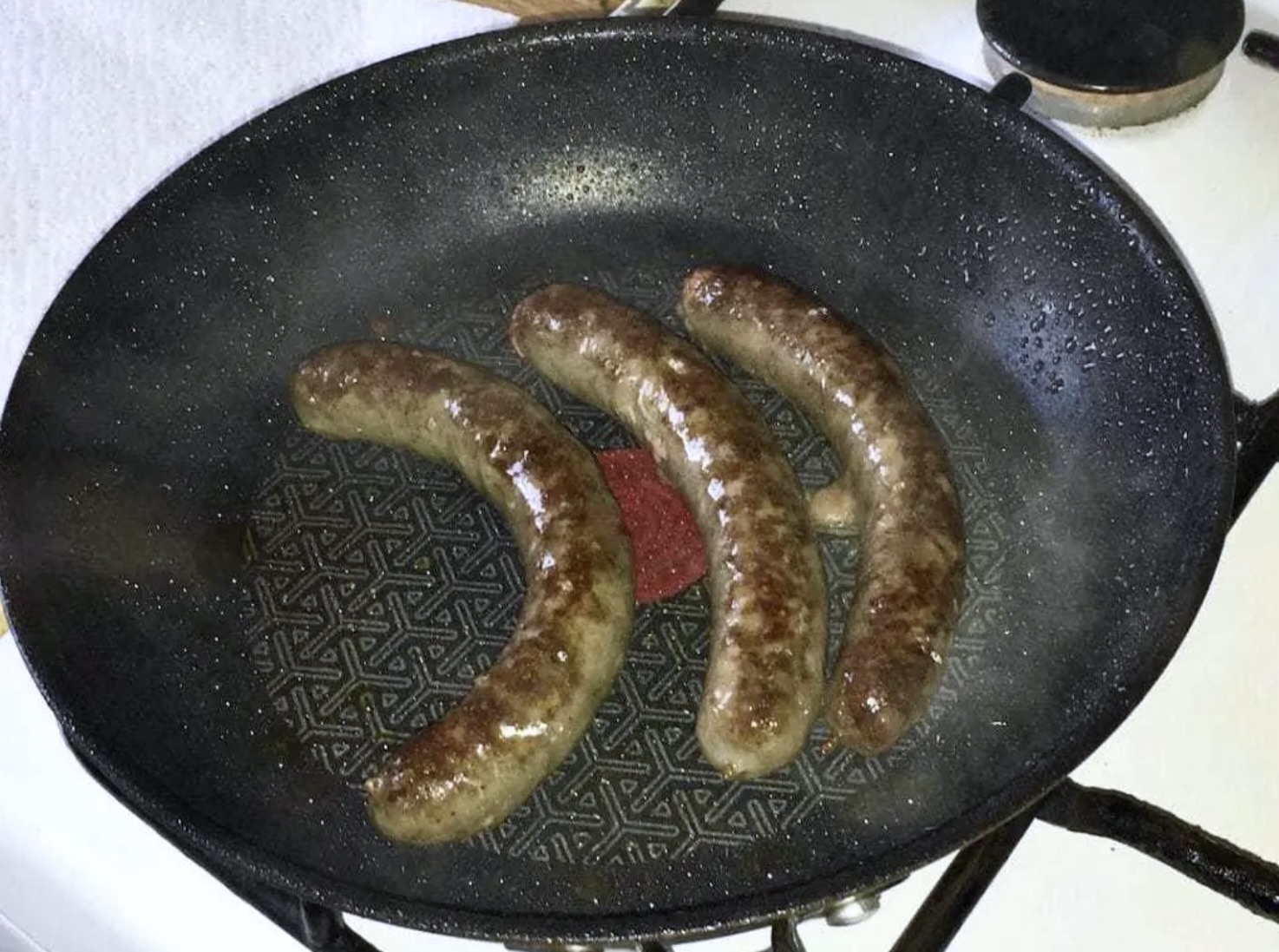 Smaż kiełbaski z obu stron przez kilka minut na średnim ogniu, aż będą gotowe.