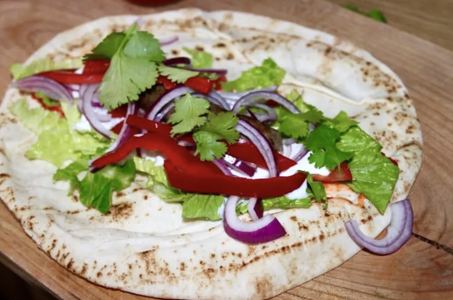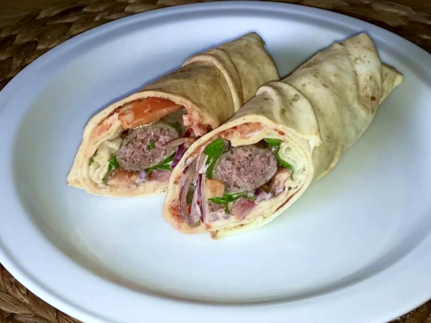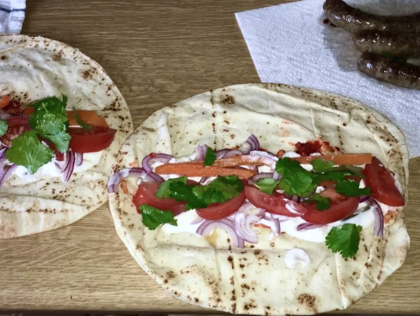 Wrapy z kiełbaską merguez i świeżą kolendrą