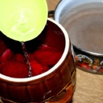 Układanie: W kamionce lub dużym słoiku układaj warstwami plastry buraków. Pomiędzy warstwy wciskaj ząbki czosnku, liście laurowe, ziele angielskie i pieprz.