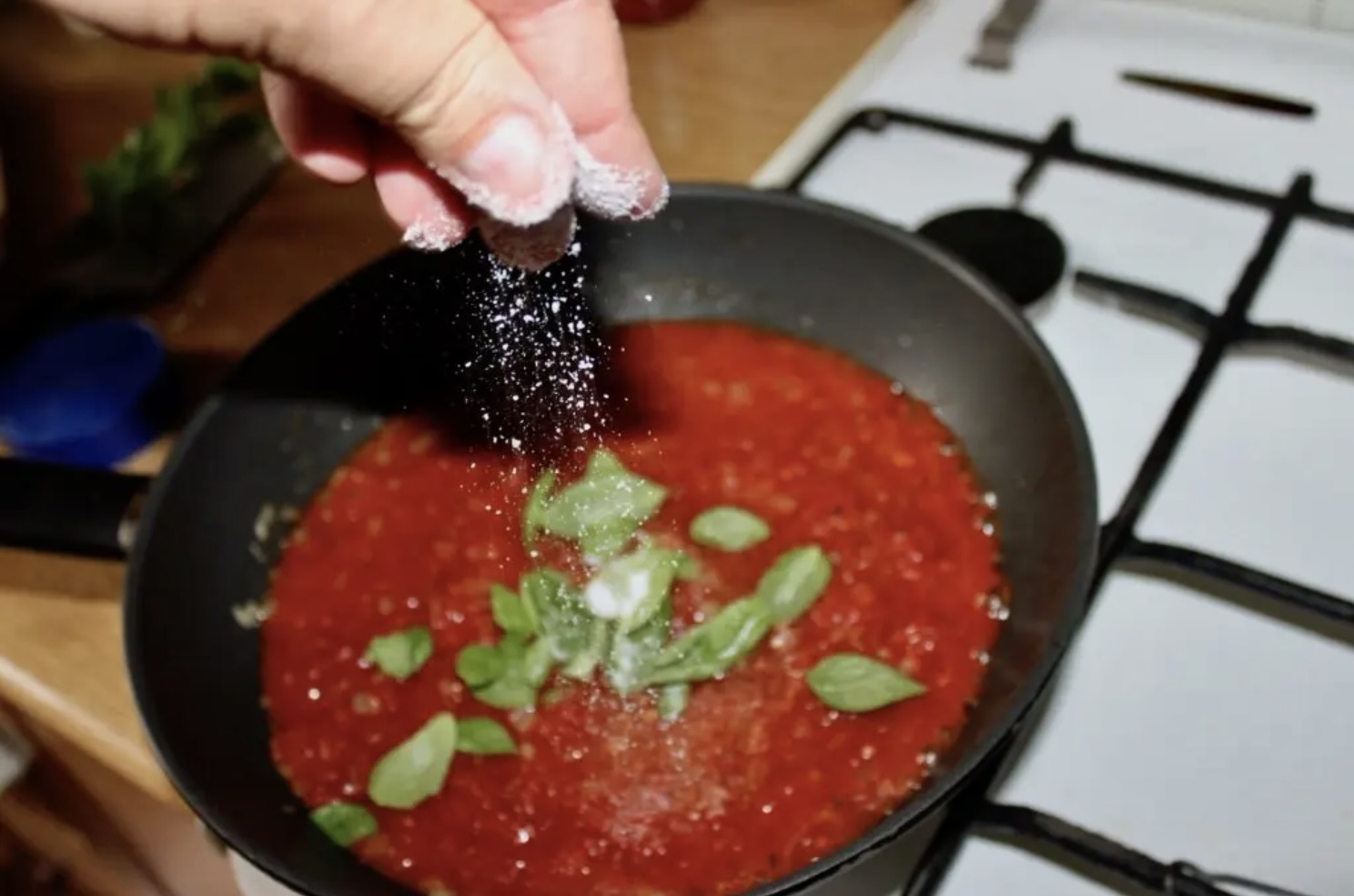 Dodaj garść liści świeżej bazylii i sól do smaku. Opcjonalnie dodaj ulubione przyprawy, np. mieszankę chilli i czosnku.