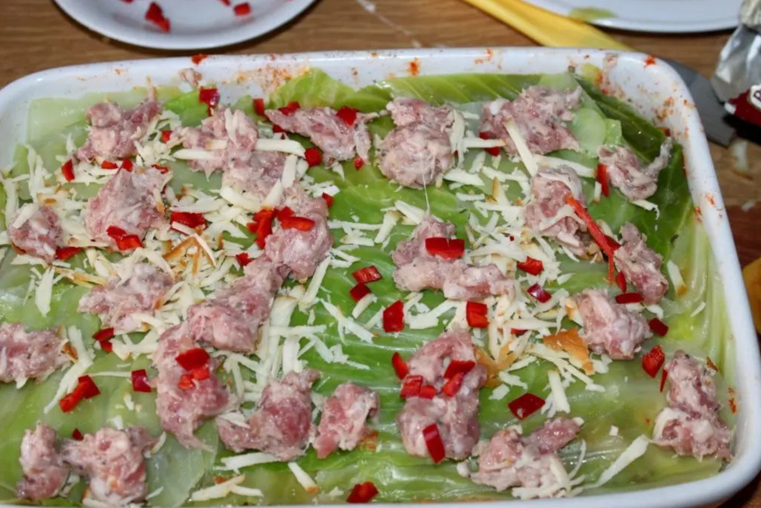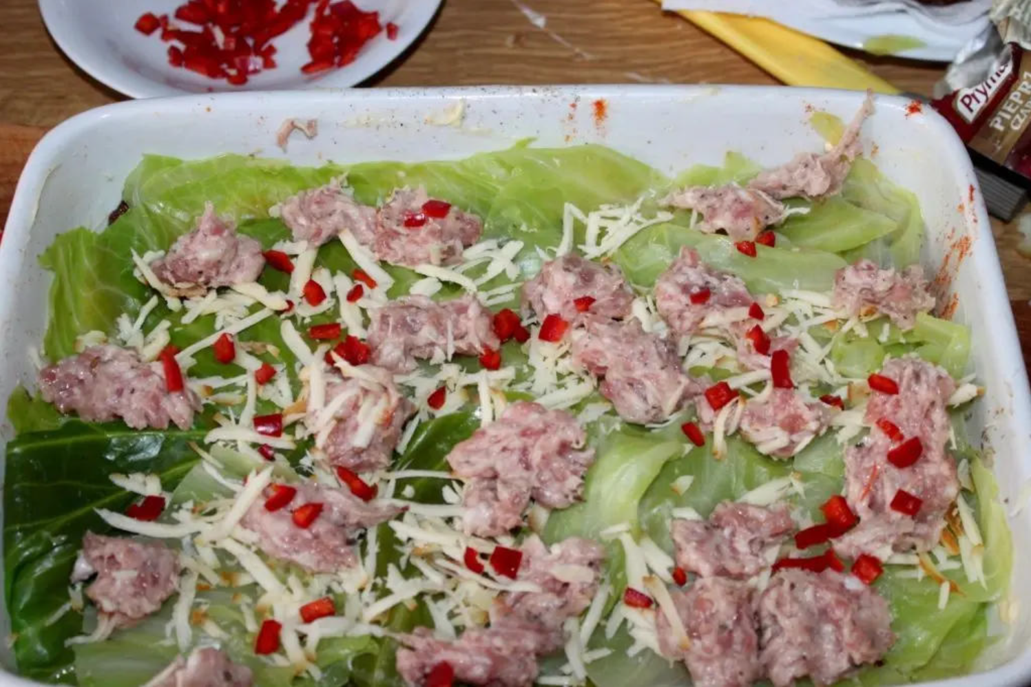 Następnie ułóż warstwę z obgotowanych liści kapusty.