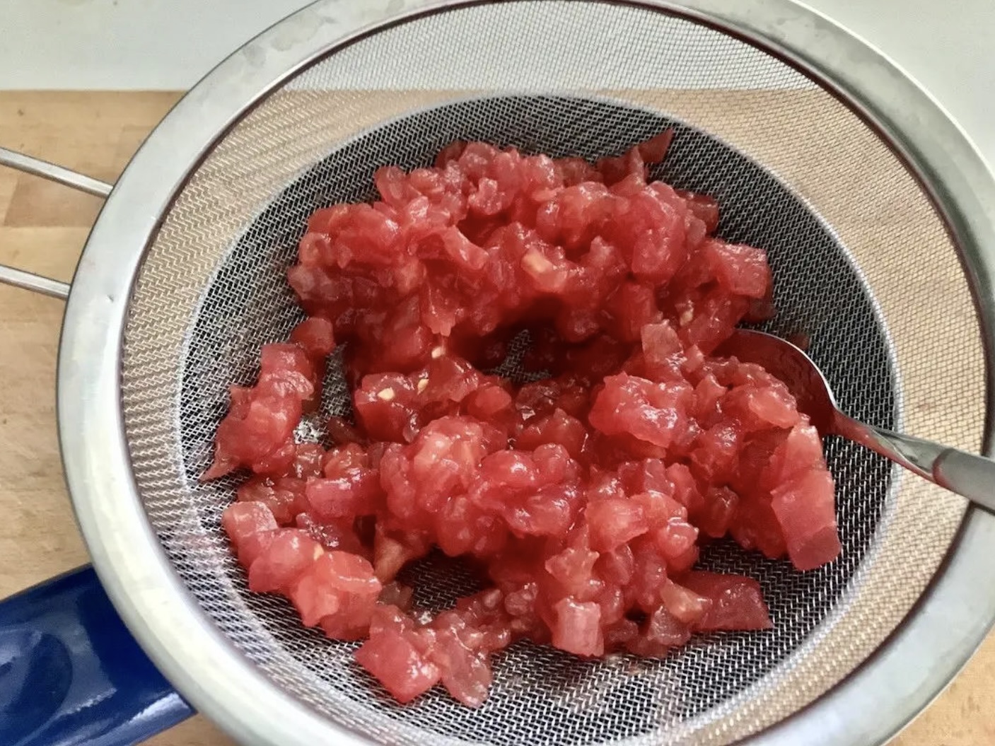 Przygotowanie pomidorów: Pomidory sparz wrzątkiem, usuń nasiona, a miąższ pokrój w drobną kostkę. Zamiast nich możesz użyć domowy sos pomidorowy.