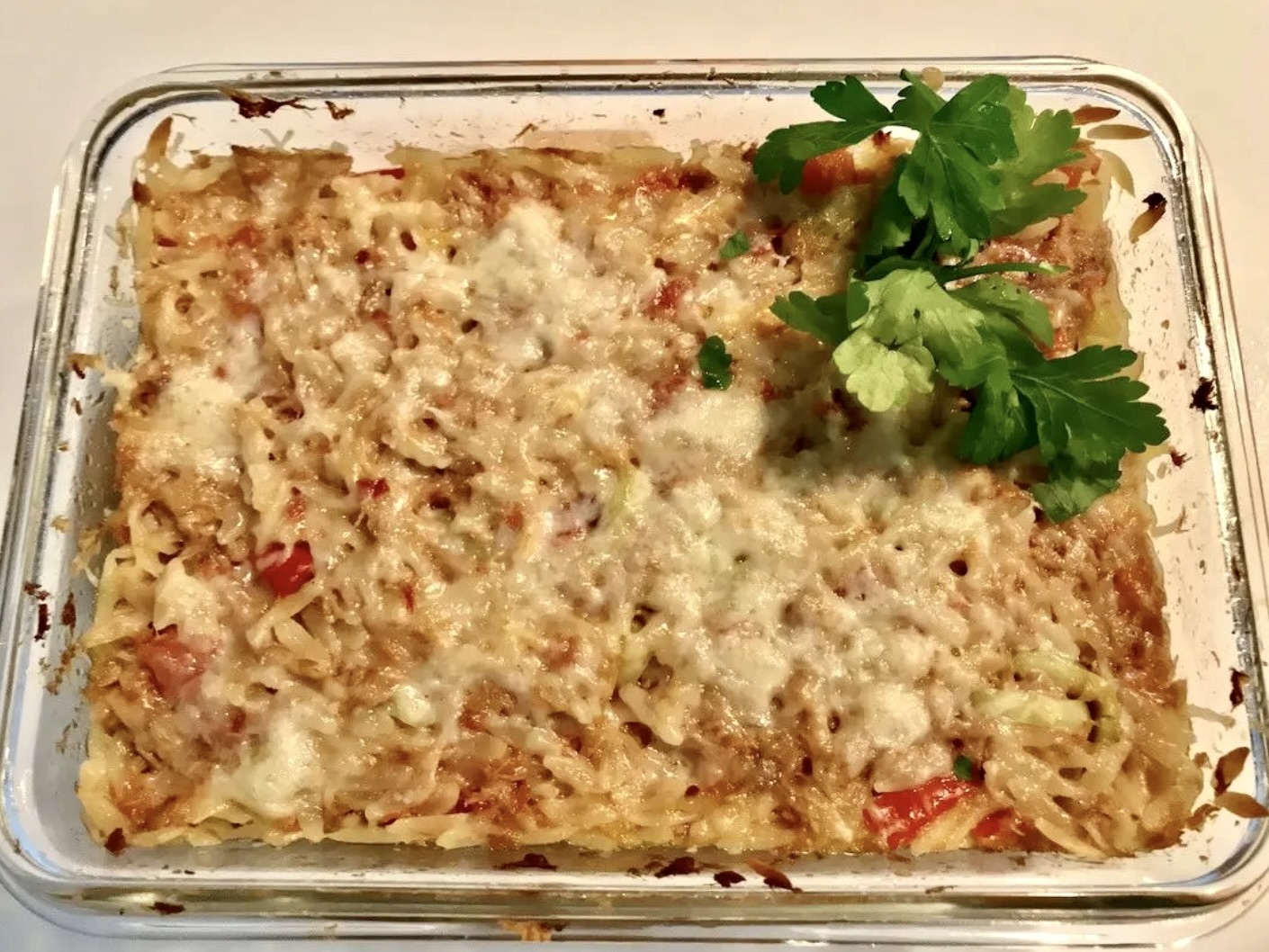 Zapiekanka z tuńczykiem i papryką na makaronie