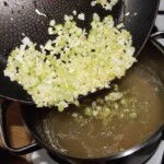 Smażenie: Cebulę i seler naciowy posiekaj dość drobno, a następnie podsmaż na oliwie.
