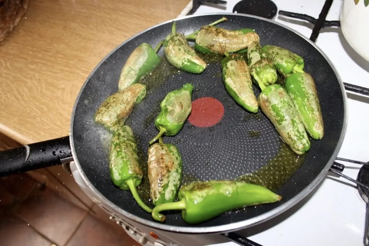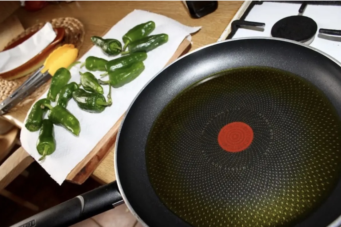 Technika: Wrzuć papryczki na patelnię i na początku ich nie ruszaj. Po około 1 minucie, gdy spód się zrumieni, obróć je na drugą stronę.