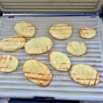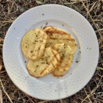 Ziemniaki z grilla przyrządzam zawsze z talarków wykrojonych z obranych surowych ziemniaków. Używam ziemniaków różnego gatunku i jak do tej pory za każdym razem moje ziemniaki wychodziły fantastycznie. Takie talarki surowych ziemniaków smaruję dość obficie oliwą, a następnie grilluję na ruszcie elektrycznym. Ziemniaki z grilla podaję od razu po upieczeniu razem z masłem czosnkowym, solą morską, a także suszonym oregano. To idealny posiłek na mały głód. Tak przygotowane ziemniaki zachwycają smakiem, o czym decyduje masło czosnkowe oraz suszone oregano. Dodatek gruboziarnistej soli morskiej smaku tego również dodaje.