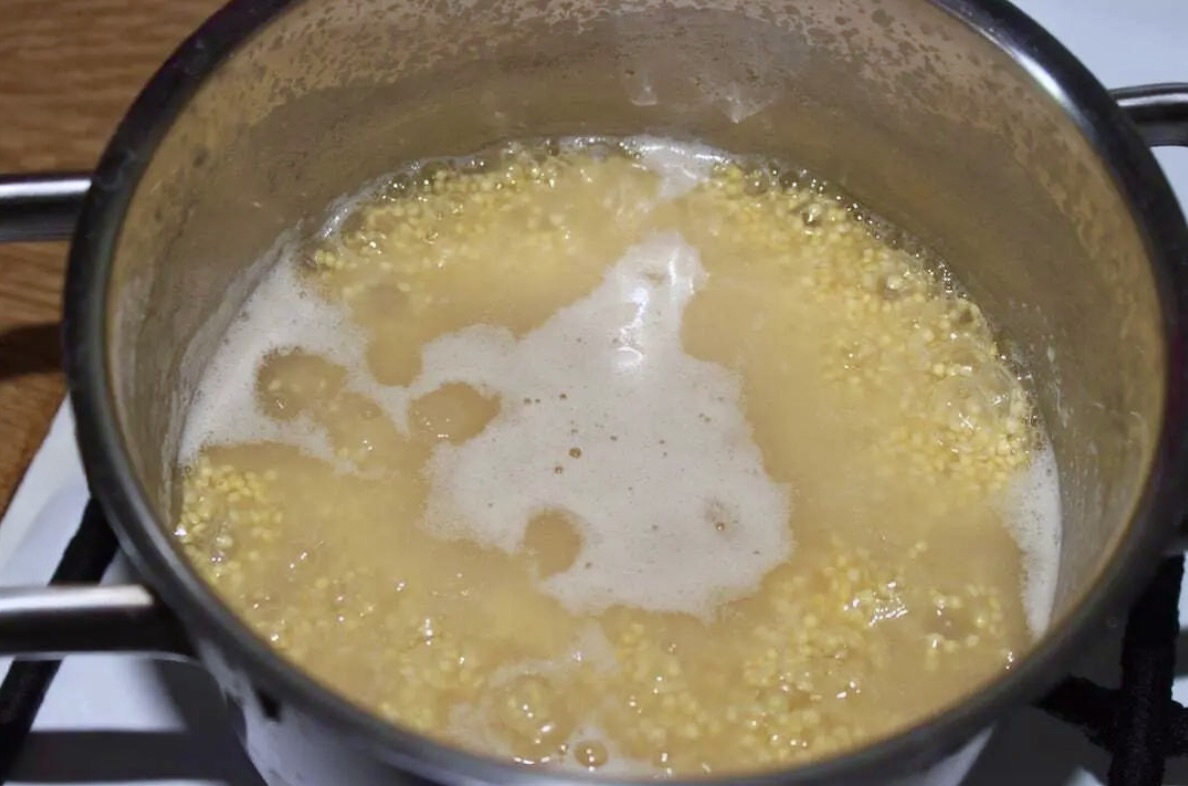 Gotowanie kaszy: Do garnka wlej 2 szklanki wrzącej, lekko osolonej wody i wsyp niecałą szklankę kaszy jaglanej. Gotuj ok. 10 minut, aż kasza wchłonie wodę. Następnie wyłącz gaz, przykryj garnek, a następnie odstaw na kilkanaście minut, aby kasza „doszła”.