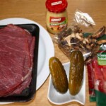 Moje zrazy wołowe z sosem grzybowym przygotowałem z udźca wołowego, choć lepiej ponoć wykorzystać tzw. krzyżową (zrazówka). Plastry wołowiny posmarować należy musztardą, obłożyć plastrami szynki dojrzewającej i kawałkami ogórka kiszonego, a następnie zawinąć w rolady i dusić wolno w sosie z grzybami do miękkości zrazów. Zrazy wołowe to danie zbliżone do klasycznych zrazów wielkopolskich, jednakże z nieco inną nutą smakową. Decyduje o tym inne nadzienie. Od jakości wołowiny zależy w tym daniu wiele, ale i szynka (element nadzienia) winna być najwyższej jakości. Chodzi szczególnie o to, by szynka ta była wędzona naturalnym dymem, dzięki czemu sos grzybowy zyska niesamowitego smaku. Zrazy wołowe to danie doskonałe na specjalne okazje. Na co dzień wymaga bowiem zbyt dużo pracy i zajmuje sporo czasu.