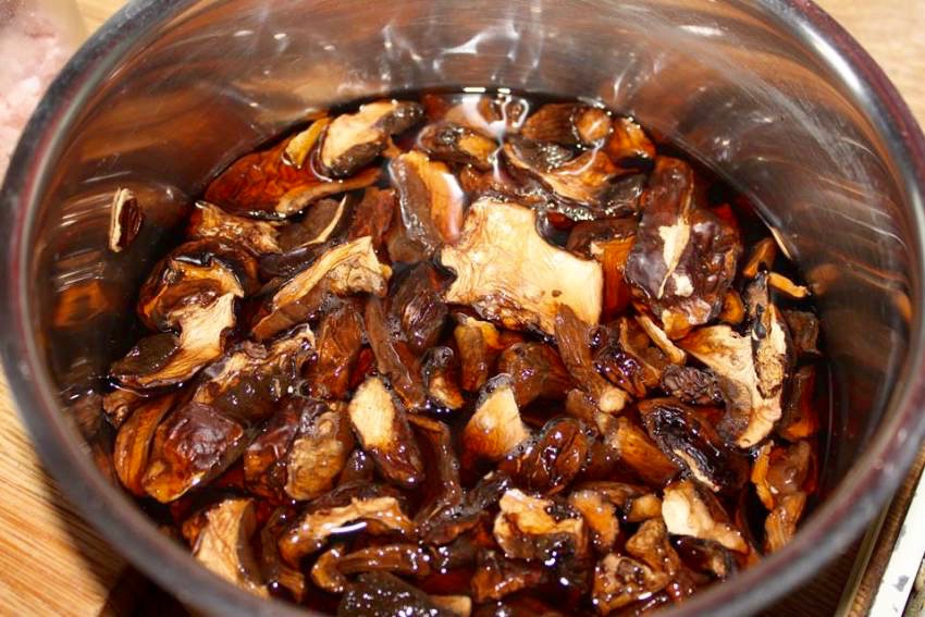 Namocz suszone grzyby we wrzątku przez 15 minut.