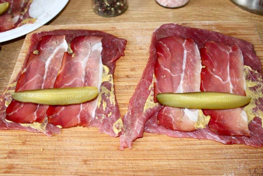Zawiń zrazy jak rolady. Owiń je sznurkiem kuchennym, aby się nie rozpadły.