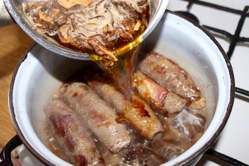 Duś zrazy wołowe na wolnym ogniu pod przykryciem około 1,5 do 2 godzin, aż mięso będzie miękkie. Jeżeli potrzeba, podlewaj je odrobiną gorącej wody.