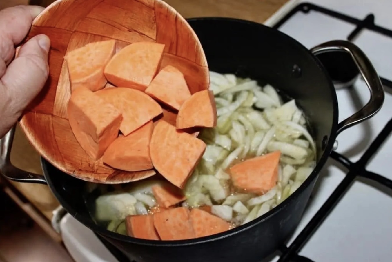 Na ostatnie 10 minut dodaj pokrojonego w kostkę batata (gotuje się błyskawicznie).
