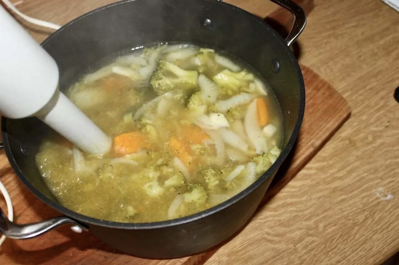 Gdy zupa jest gotowa, wyjmij głąb z brokuła (jeśli był dodany).