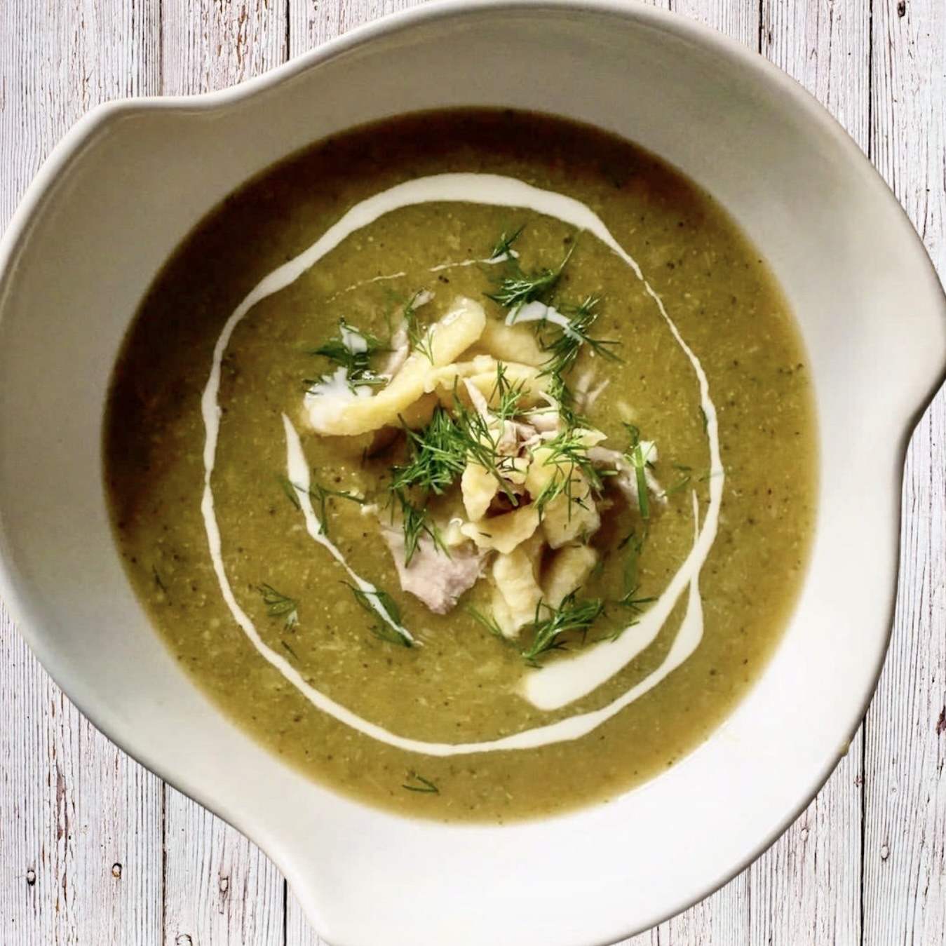 Zupa brokułowa z fenkułem, batatem i kurczakiem