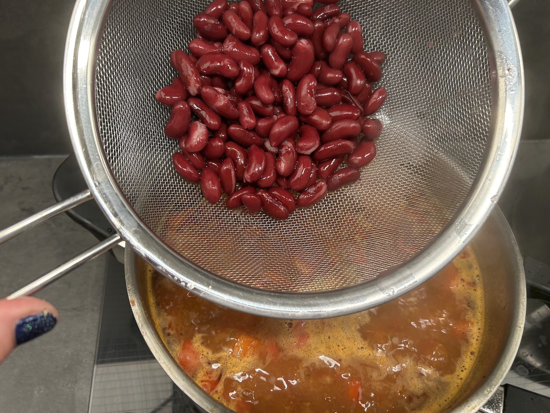 Wykończenie: Gotuj zupę przez około 10 minut. Spróbuj i ewentualnie dopraw (ja zazwyczaj dodaję pozostałą część przyprawy chilli con carne dla ostrości).