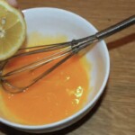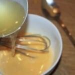 Zahartowanie zupy: W małej miseczce umieść trzy żółtka i wyciśnij do nich sok z połowy cytryny. Mieszaj nieustannie, aby żółtka się nie ścięły. Wlej chochlę letniego wywaru do masy jajeczno-cytrynowej, cały czas mieszając.