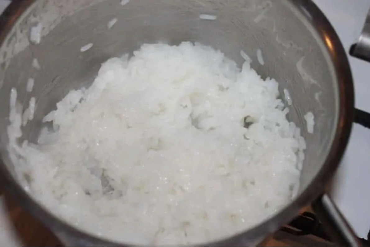 Gotowanie ryżu: W osobnym naczyniu ugotuj ryż (1 miarka ryżu na 2 miarki wrzącej, lekko osolonej wody). Gdy woda się wygotuje, przykryj garnek i pozostaw na 10 minut, aby ryż spęczniał.