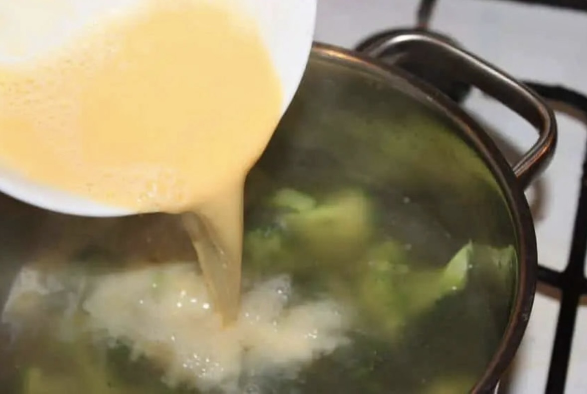Dodanie brokuła: Do gotującego się wywaru wrzuć brokuła podzielonego na różyczki. Gotuj około 5 minut, aż brokuł będzie „al dente”. Wyłącz gaz i odstaw.