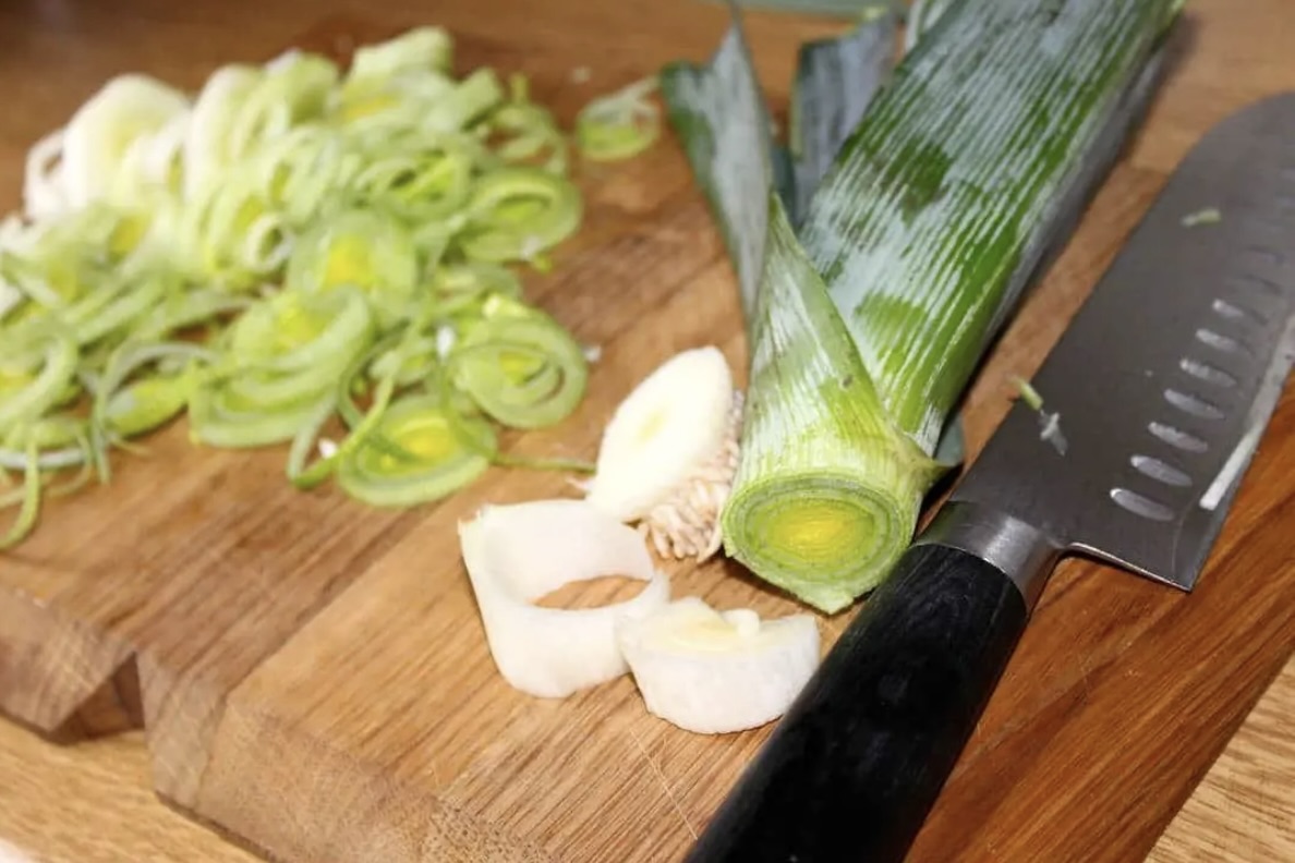 Cebulę pokrój w drobną kostkę, a pora w plasterki.