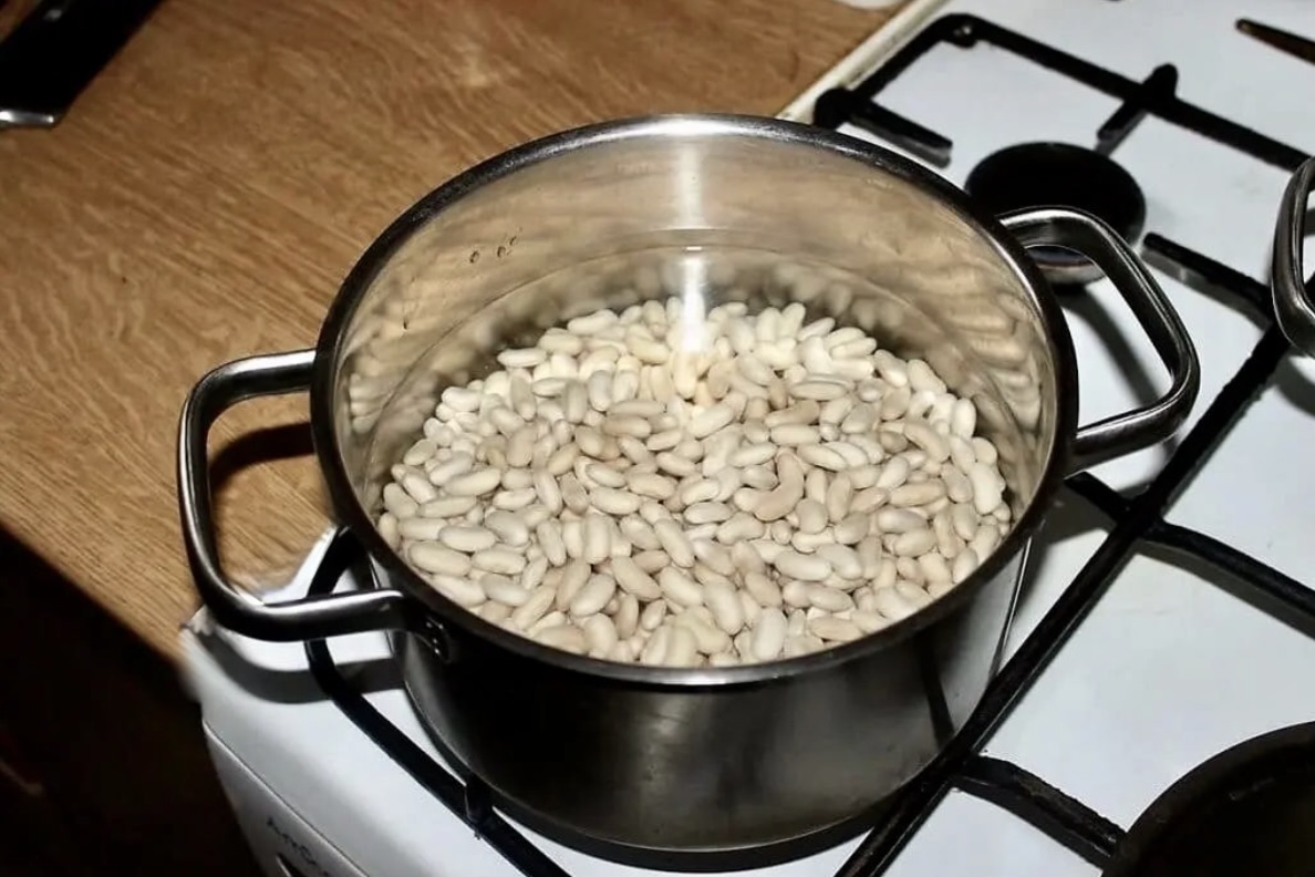 Fasola: 500 g suchej, drobnej białej fasolki.