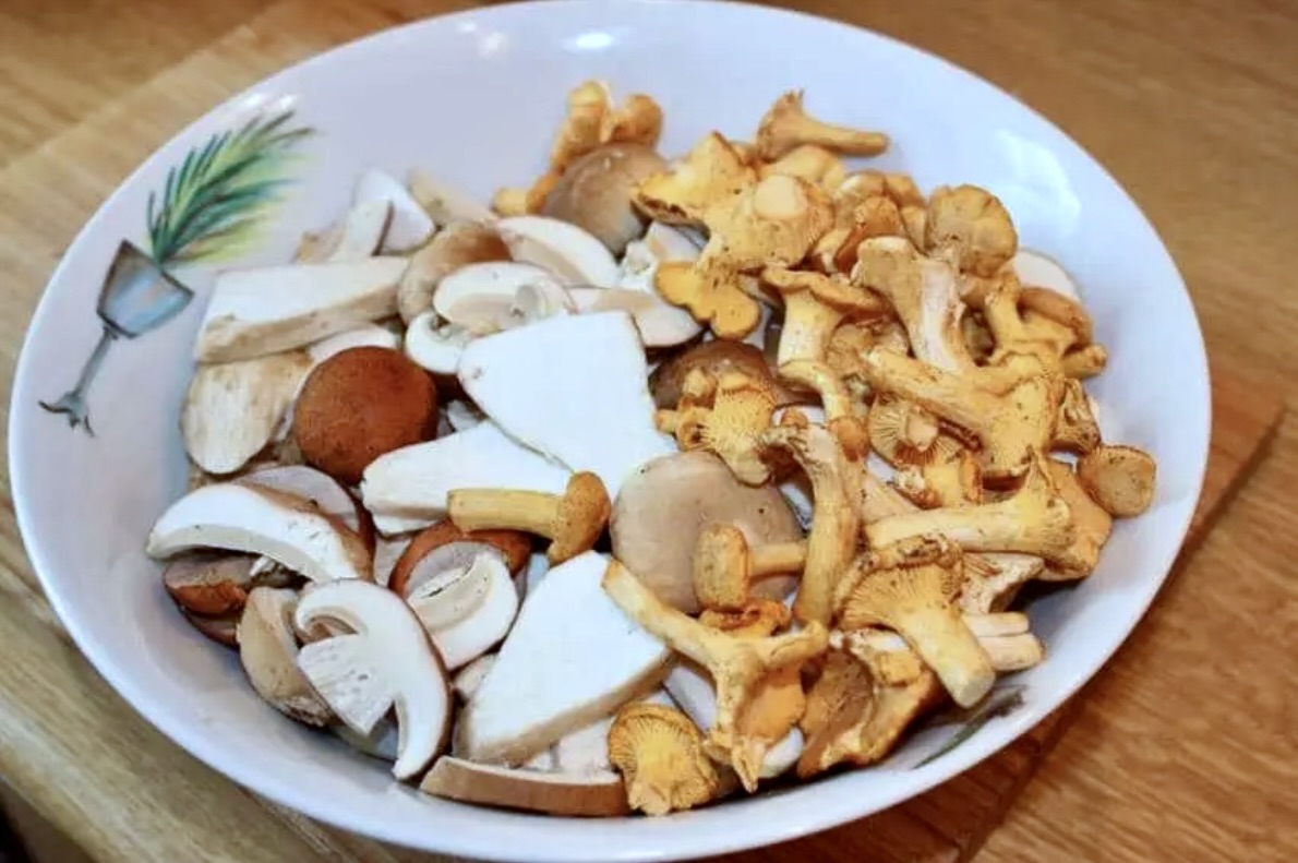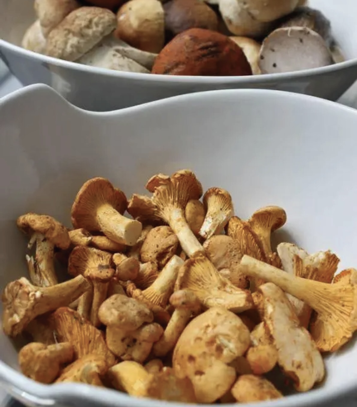 Grzyby: 500 g świeżych prawdziwków, 200 g świeżych małych kurek, kilka świeżych kozaków.