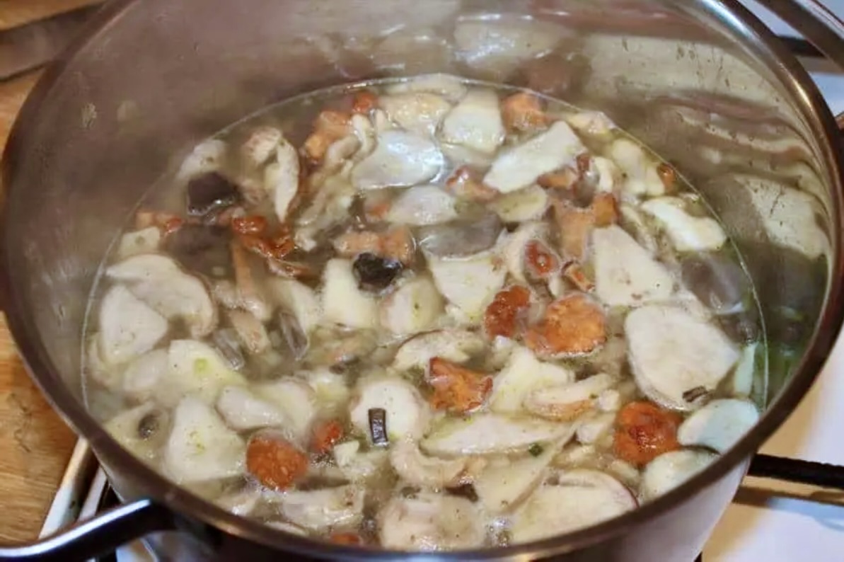 Grzyby dokładnie oczyść. Większe (prawdziwki, kozaki) pokrój w spore kawałki, a mniejsze pozostaw w całości. Ważne, aby grzyby były widoczne w zupie, a nie stworzyły papki.