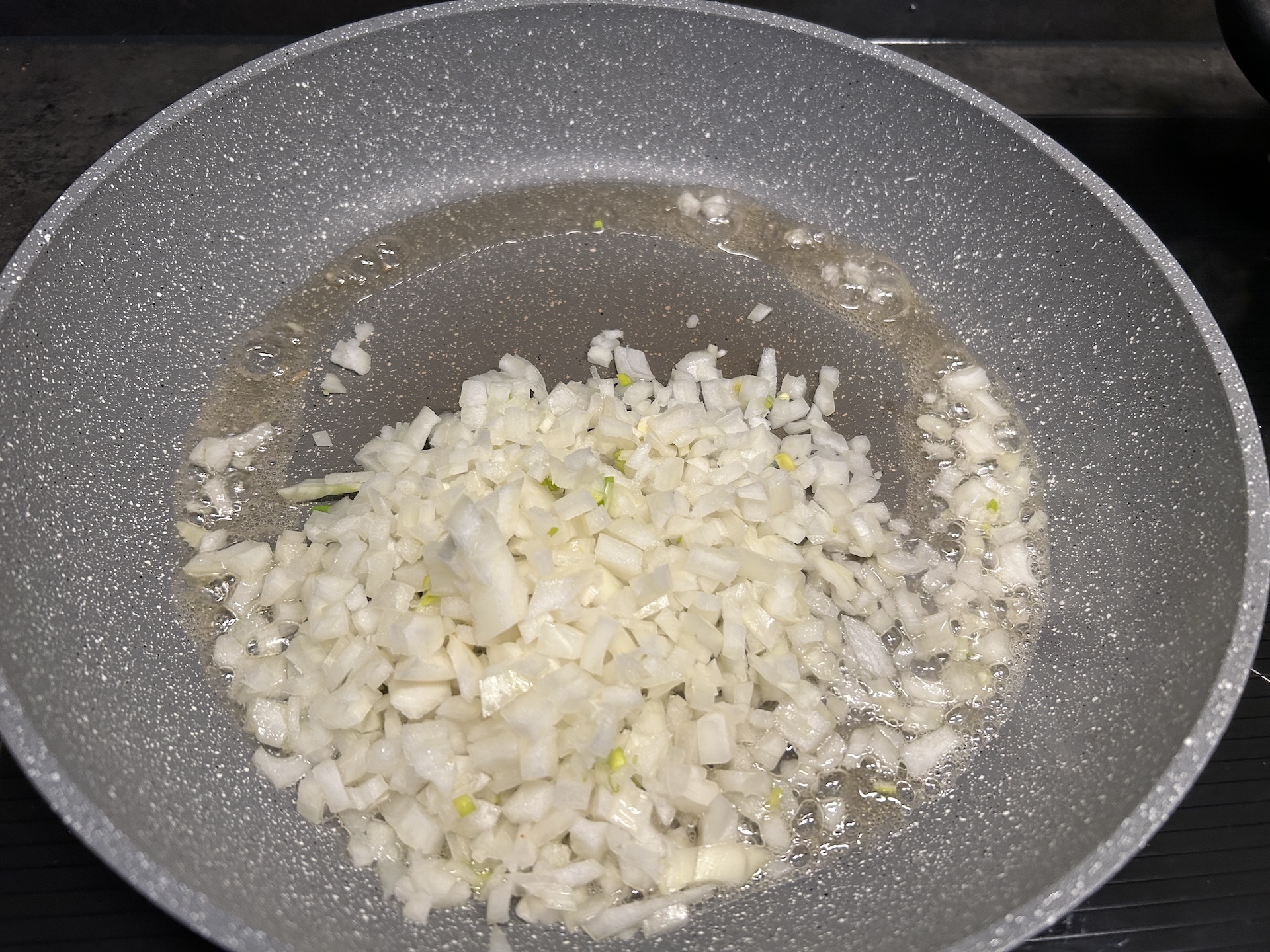 Na patelni rozgrzej tłuszcz i podsmaż cebulę na złoty kolor.