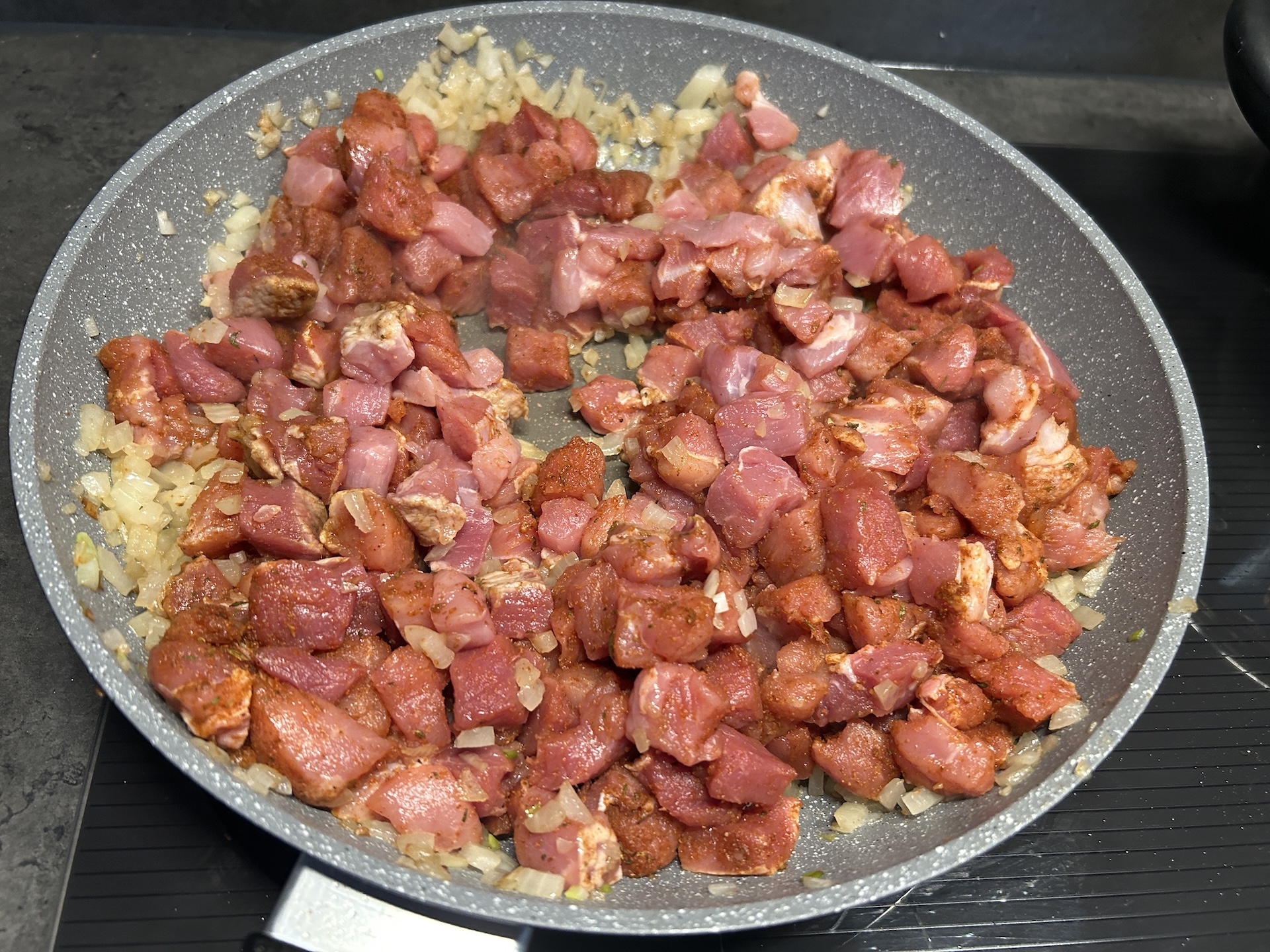 Dodaj mięso i smaż, aż lekko się zrumieni.