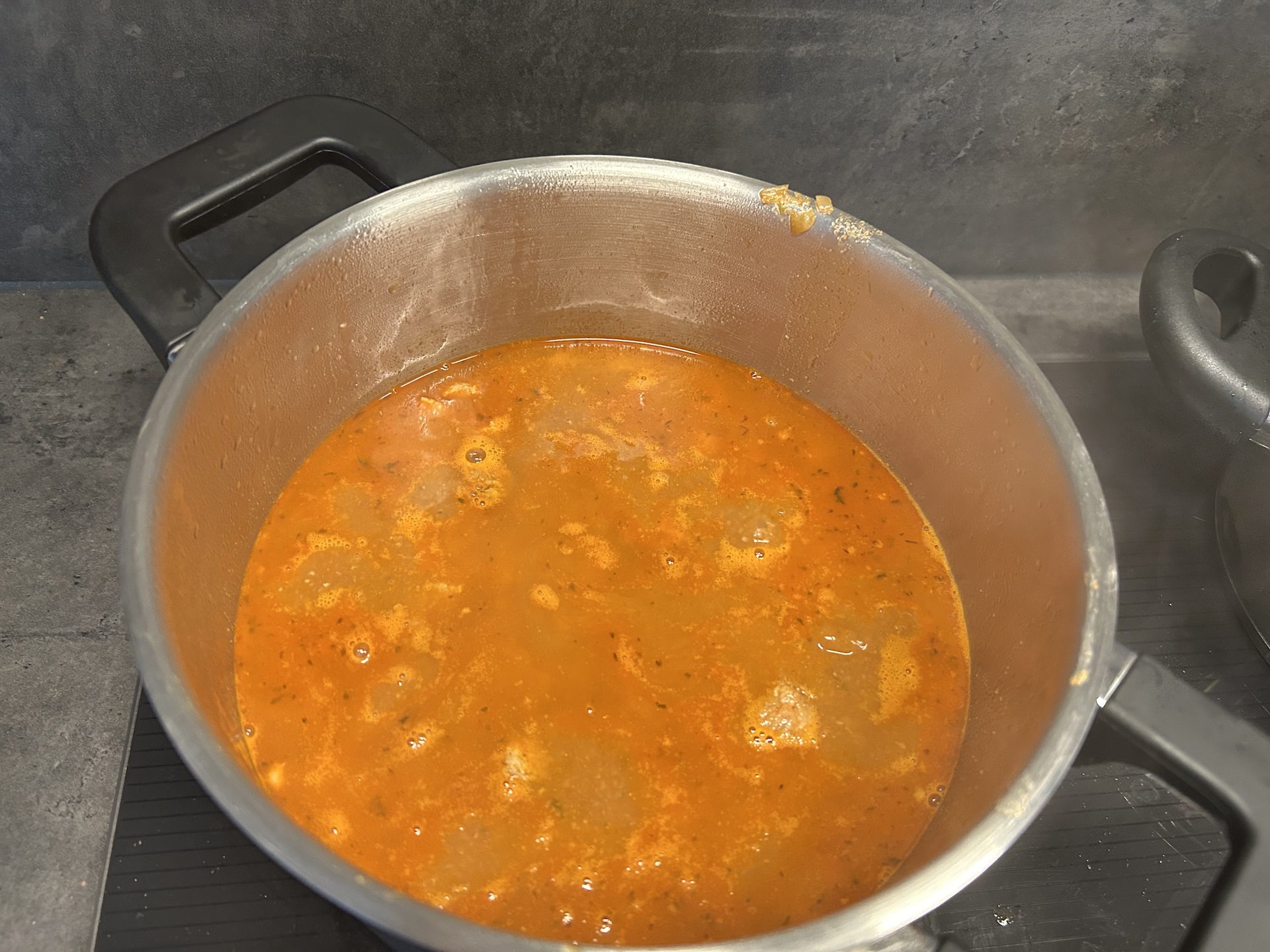 Przełóż zawartość patelni do garnka, zalej wrzącą wodą i gotuj na małym ogniu przez około 1 godzinę.