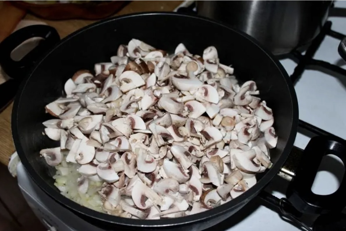 Pieczarki pokrój i podsmaż na patelni.