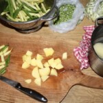 Dodaj pokrojone w kostkę ziemniaki. Gotuj przez około 10 minut.