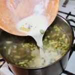 Jeśli bób był młody i nieobrany, dodaj go razem z fasolką. Jeśli używasz bobu już ugotowanego i obranego, wrzuć go do garnka teraz.