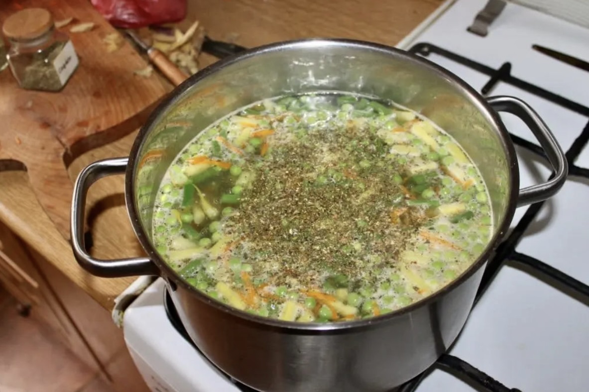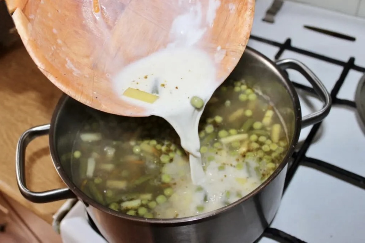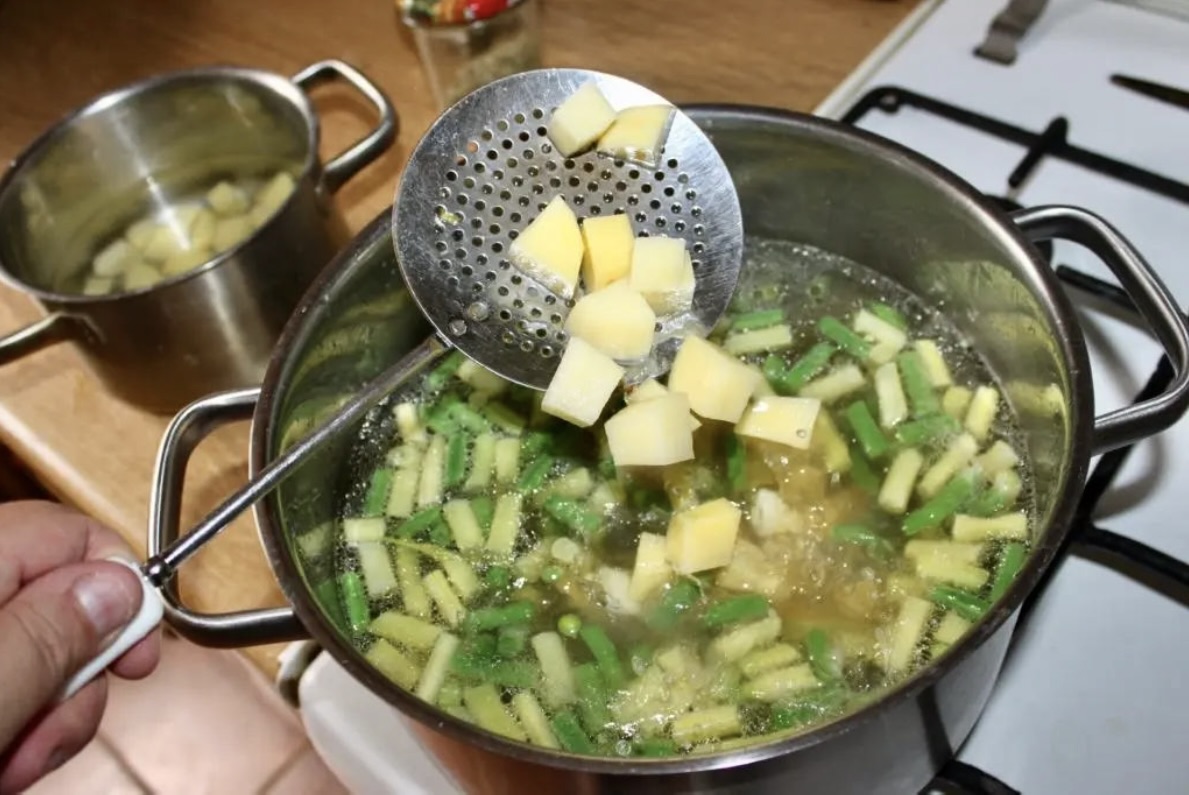 Do garnka dorzuć przygotowaną fasolkę szparagową. Gotuj całość przez kolejne 10-15 minut, aż wszystkie warzywa będą miękkie.