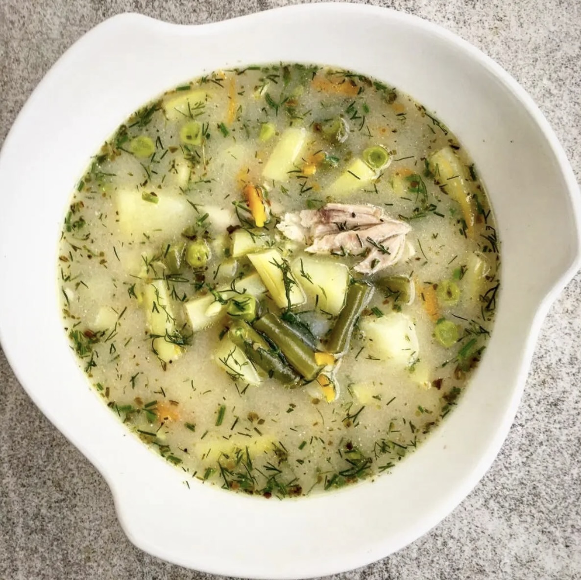 Na samym końcu wsyp dużą ilość posiekanego koperku. Zupa najlepiej smakuje po kilku minutach „odpoczynku” pod przykryciem.