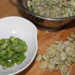 Bób: Wrzuć bób na wrzącą, osoloną wodę i gotuj 5 minut. Odcedź, a gdy lekko przestygnie, wyłuskaj go z łupinek.